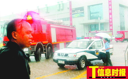邱先生介绍,爆炸发生后20分钟左右,消防车陆续赶来救火,救护车也陆续赶到。记者在现场看到,4家 医院的救护车在现场,包括一辆化学中毒抢救车。赶赴现场救火的消防车则有10多辆之多,记者赶到现场时,大火已基本扑灭,黑黑的浓烟也渐渐散去,但厂区的门前还可以闻到刺鼻的味道。