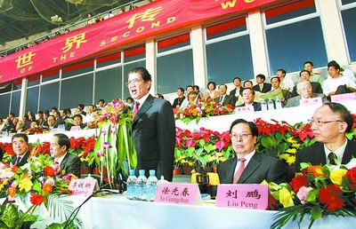 昨晚,第二届世界传统武术节在郑州市河南省体育中心隆重开幕。全国人大常委会副委员长李铁映宣布开幕。全国政协副主席李兆焯,国家体育总局局长、中国奥委会主席刘鹏,省委书记徐光春,省长李成玉等出席了开幕式。