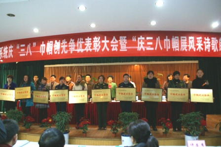 (图:在驻马店市交通运输系统庆“三八”巾帼创先争优表彰大会上,驻马店分公司运营监管中心荣获“巾帼建功集体”荣誉称号。)