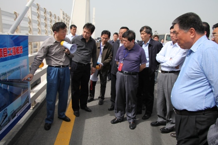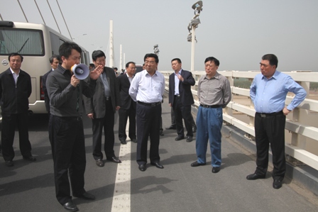 4月25日下午,全国供销总社理事会主任李成玉带领参加全国供销合作社职业教育工作会议的代表200余人,在副省长张大卫,省交通运输厅李和平副厅长及中原股份公司主要负责同志的陪同下,到郑新黄河大桥视察指导工作。李成玉主任一行驱车察看了宏伟壮观的大桥全线,听取了大桥工程建设及开通运营后的情况汇报,对大桥建设和运营管理取得的优异成绩给予充分肯定。同时,希望郑新黄河大桥分公司在运营管理中,不断提升管理和服务水平,进一步促进和带动黄河两岸城市间的合作交流,为中原经济区建设提供强有力的交通运输保障。