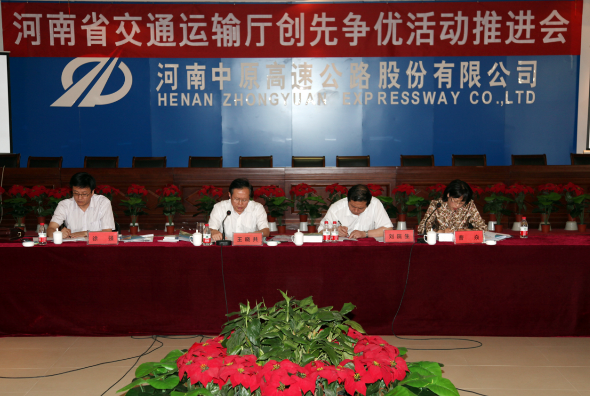 5月26日中原高速党委在郑州南服务区承办组织了由厅直党委主持的河南省交通运输厅创先争优活动推进会,参会单位有交投集团、公路局、高管局等党政领导及厅直属二级单位党委书记。会上中原高速党委及郑州分公司党委等七个创先争优活动先进单位做了发言。最后,王晓共书记给予此次会议很高评价,对各单位所取得的成绩给以充分肯定,并对下一步创先争优活动进行了统一部署安排,会议圆满结束。
