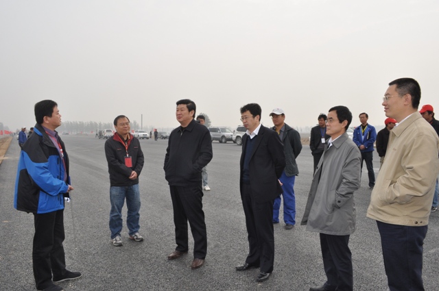 中原高速董事长关健、总经理高建立、副总经理张伟中的陪同下,视察郑民项目建设,对项目良好的建设局面给予充分肯定。)