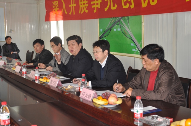 (省厅李和平副厅长在郑民项目郑州段土建一标项目经理部组织召开项目建设座谈会,提出具体要求。)