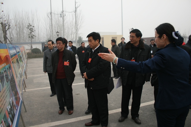 (河南省十届政协科技组委员们观看郑新黄河大桥企业文化展板)
