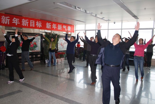 ”第一节,伸展运动,一二三四……” 富有节奏感的音乐,以及机关干部员工排列有序做操的场面,成为近日中原高速机关办公楼内一道新鲜独特的风景。