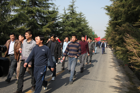 上午9时,参加活动人员在省厅、交通集团、中原高速领导的带领下,挥舞着鲜艳的旗帜,迈着矫健的步伐,沐浴着春天的阳光,顺着黄河大堤向东开始了长达五公里的健步走比赛。