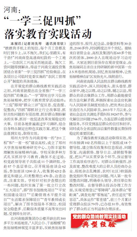 “一学三促四抓”落实群众路线教育实践活动